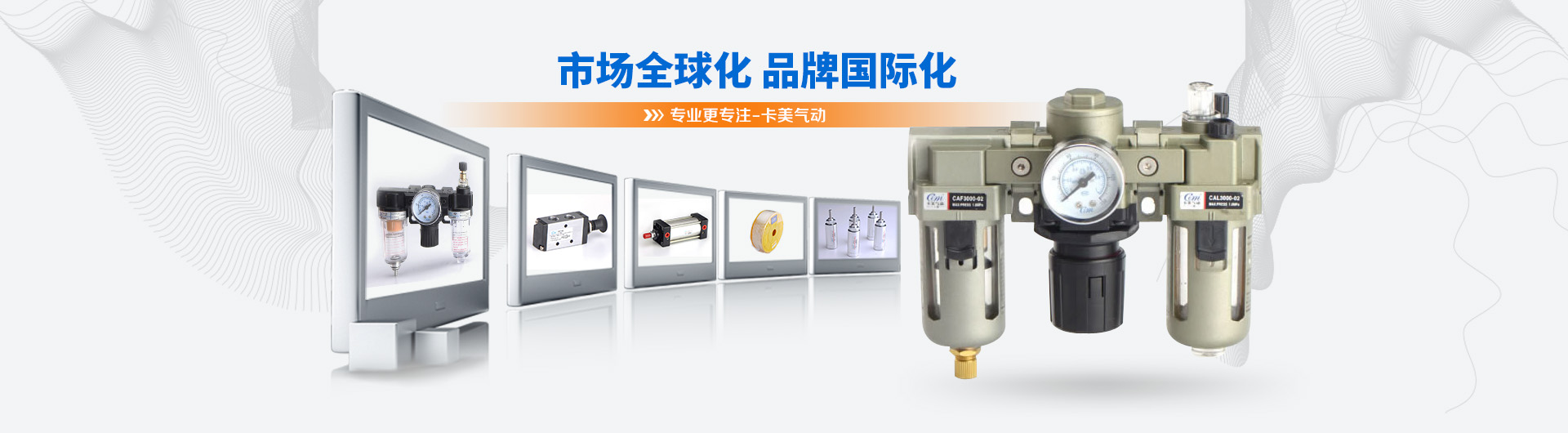 卡美氣動有限公司是一家具有現(xiàn)代化生產(chǎn)規(guī)模的專業(yè)開發(fā)、制造氣動元件的公司。主導產(chǎn)品有:氣源處理系列、標準缸、迷你缸、超薄缸、QGB(大直徑)氣缸、雙軸缸、電磁閥、氣動閥、油壓缸、快速接頭、PU氣管等產(chǎn)品。